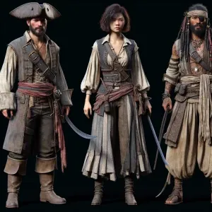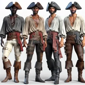«Handsome pirates, full body image, different side, detailed char...»