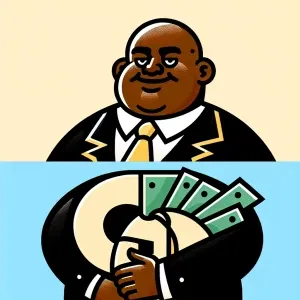 «Can you make a logo illustration of A fat bald black rich guy an...»