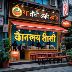 «create an advertisement of fast food cafe with name भुक्खड़ usin...»