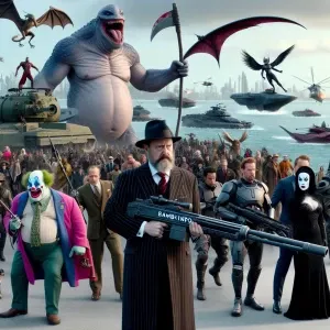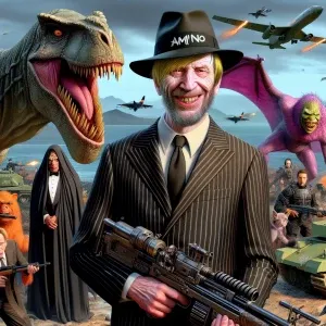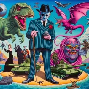 «Pixar style middle aged gaunt man on an island in pinstriped sui...»