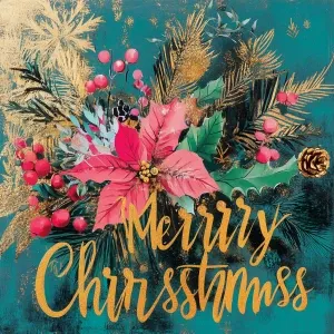 «A beautiful Christmas image with gold leaf. It says ‘Merry Chri...»