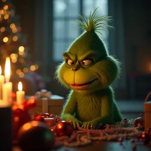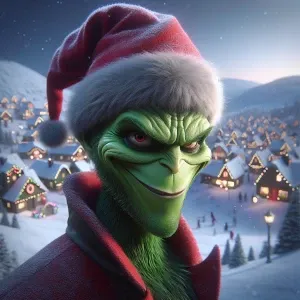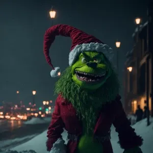 «"Create a mischievous, festive character resembling the Grinch f...»