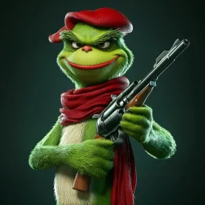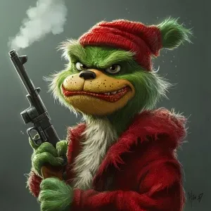 «Grinch with a gun in his hands as a bandit. Use carton style. ma...»