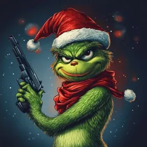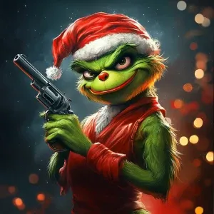 «Grinch with a gun in his hands as a bandit. Use carton style. 12...»