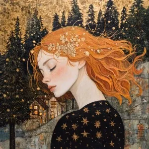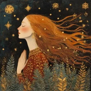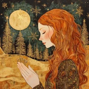 «Image of a woman long Ginger hair expressing gratitude amidst a...»