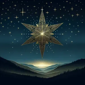 «Create an image of a serene Christmas night sky, prominently fea...»