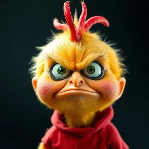 «Chicken Little portrayed with an excessively exaggerated express...»