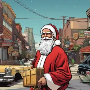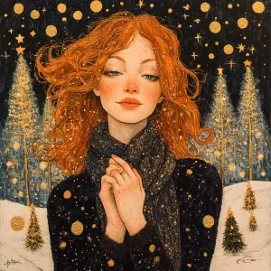 «Image of a woman expressing gratitude amidst a warm, festive Chr...»
