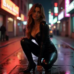 «A highly realistic and cinematic image of Dahlia Valentina crouc...»