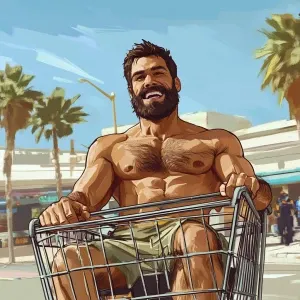«Elon Musk..riding in a shopping cart being chased by cops, in GT...»