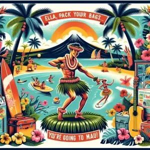 «generate an image with a Maui theme and a hula girl prominent th...»