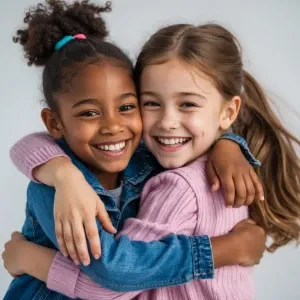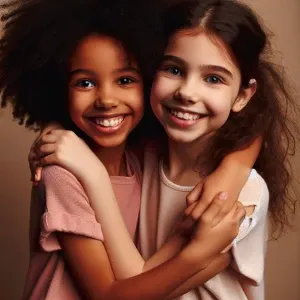 «Two nine-year-old girls, one African American and the other Cauc...»