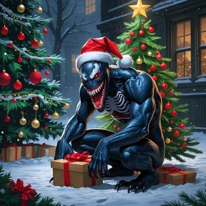 «Venom eating a Christmas tree»