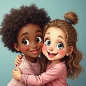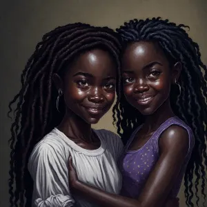 «Two nine-year-old chibi girls, one African American and the othe...»