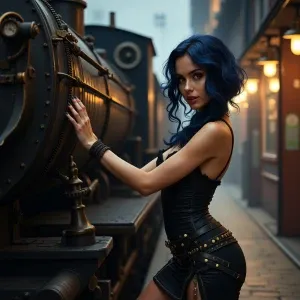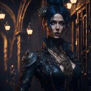 «Sultry, vintage-inspired illustration of a seductive dark blue h...»