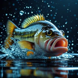 «hyper realistic image of a macro lens photography of a bass, spl...»