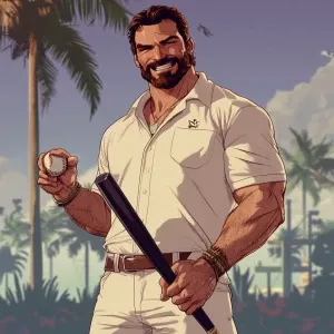 «Sloths slerf meme..80's clothing holding a baseball bat, in GTA...»