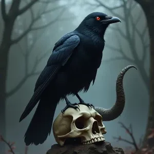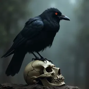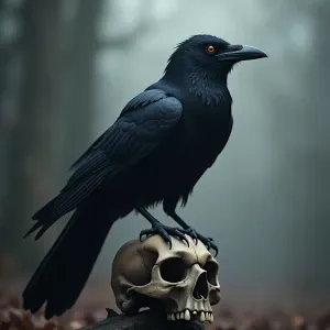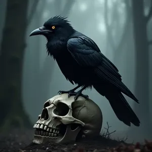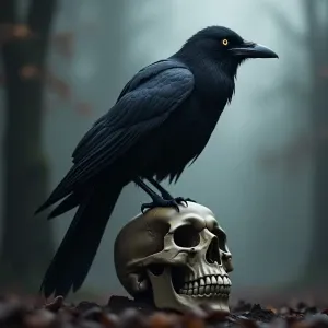 «Create a representation of a crow, focusing on its glossy black...»