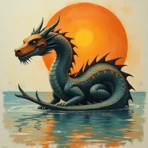 «Magical Realism, Portrait, A Sunbathing dragon made of water at...»
