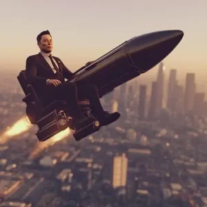 «Elon Musk..riding a rocket, in GTA San Andreas and carton style»