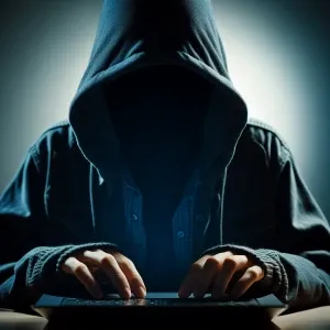 «Wide shot Front view shot of A mysterious hooded character looki...»