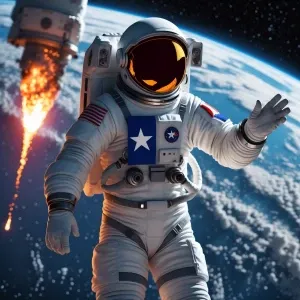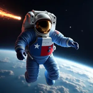 «An astronaut wearing a uniform designed with the Texas flag them...»