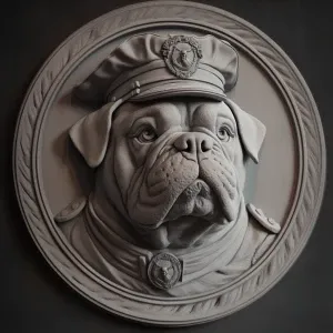 «Design a grayscale 3D bas-relief of marine bulldog, featuring so...»