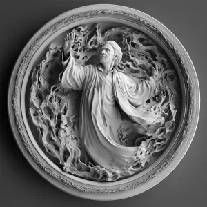«Design a grayscale 3D bas-relief of ghost of Christmas past, fea...»