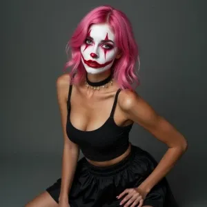 «Portrait of a beautifu Tan l Caucasian woman with pink Metallic...»