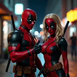 «Create an image of Deadpool and Lady Deadpool, the Marvel Comics...»