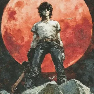 «dramatic, high-contrast illustration in gritty 1990s seinen mang...»