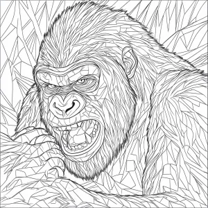 «Create a coloring page design with thick lines, featuring a Gori...»