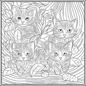 «Create a coloring page design with thick lines, featuring a kitt...»