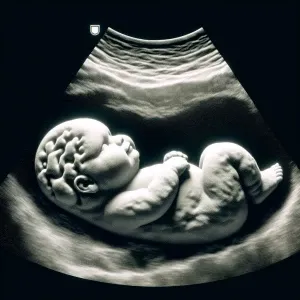«Sonogram image of a baby with distinct anatomical features layin...»