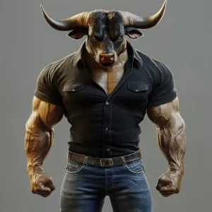 «Create a photorealistic image of a Taurus man-bull hybrid with e...»