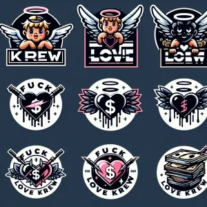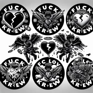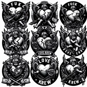 Circular logos for 'FUCK LOVE KREW' with black, brok...»