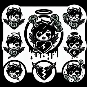Circular logos for 'HEART WRECKERS CLUB' with black,...»