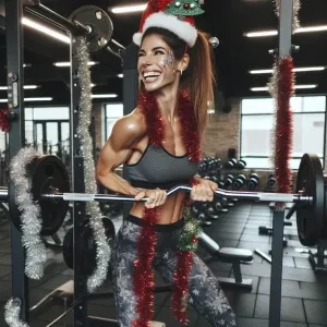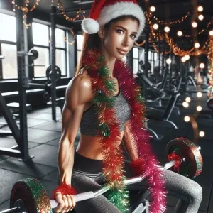«Woman with brown hair in ponytail at Christmas in the gym liftin...»