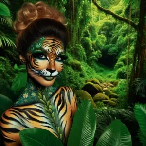 «Hollywood make-up, a woman painted to look like a tiger , full-...»