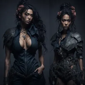 «Hollywood make-up, a woman painted to look Medusa, full-body ph...»