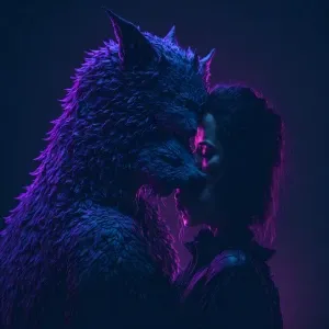 «A vibrant, stylized illustration of a woman embracing a large, d...»