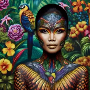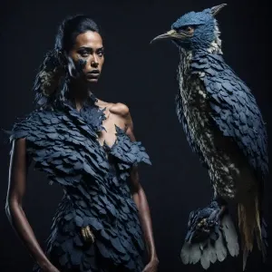 «Hollywood make-up, a woman painted to look like a bird, full-bo...»