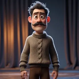 «A 3D Pixar-style character of a tall, skinny man with big round...»