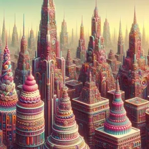 «Create an 8K UHD hyper-realistic 3D image of a surreal cityscape...»