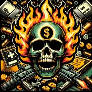 «Create an intense, comic-style brand logo featuring a skull engu...»
