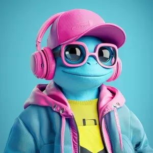 «ChillGuy, a playful and inventive blue monster character wearing...»