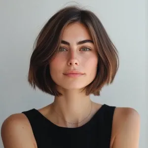 «a woman, look to the camera, 'Layered bob' hairstyle»