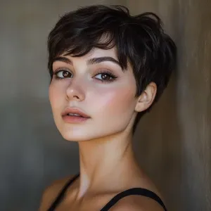 «a woman, look to the camera, close up photo, Pixie cut Hairstyle...»