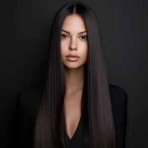 «a woman, look to the camera, long sleek straight Hairstyle, smoo...»