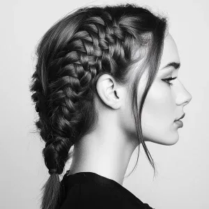 «a woman, look to the side, Waterfall Braid Hairstyle»